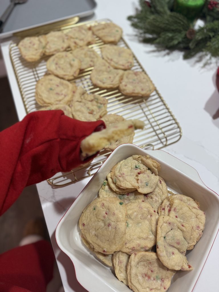 - Add Sprinkles – Gently fold the red and green sprinkles into the dough until evenly distributed.